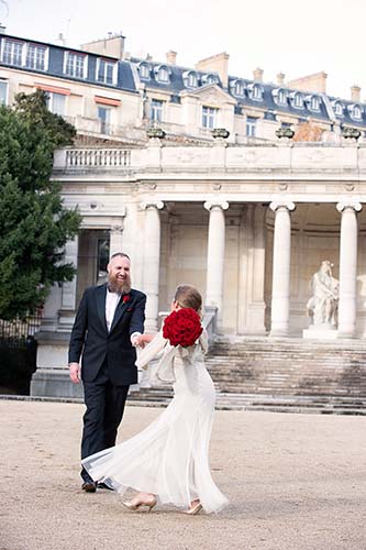 Elle and David celebrated their wedding day in Paris. They had an intimate wedding celebration with a few family members. The two of them got ready at the hotel Georges V while their wedding ceremony was hosted at the chapel Expiatoire of Paris. Pastor Jeff from the American church officiated their ceremony. Elle and David engaged in Paris two years ago and decided on Paris for their wedding, kissing on one of the bridges. We travelled the streets of Paris for a few hours for photos and video from the seine to the ile saint louis, the Louvre and the gardens of the palais Royal. The reception took place at the Shangri-La hotel. Our Paris wedding cinematographers have the imagination and experience to capture material that is intimate and timeless. From elopement wedding videos to full day wedding coverage, documenting your very special day is our passion. Our style is simple and authentic; in fact, a we have a Journalistic style filming with eye-catching angles. Our trademark is composed of catching true moments, plenty of romance and tenderness, as well as warm illuminating colors blended to our cinematography frames. We really love what we do. Let us capture the emotions, the motion picture, the sound and the ambiance of your event.